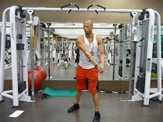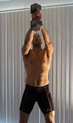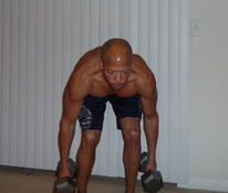 Don't even attempt to do these exercises if you can't handle strenuous physical activity. Some of the moves are complex. You should always consult your physician before starting any exercise program. Proper form must be maintained throughout the whole movement. Don't lift more weight than you can handle. During the lifts, if something doesn't feel right, stop doing it. The exercises on these pages are the exercises that I do. You are welcome to try them at your own risk.
